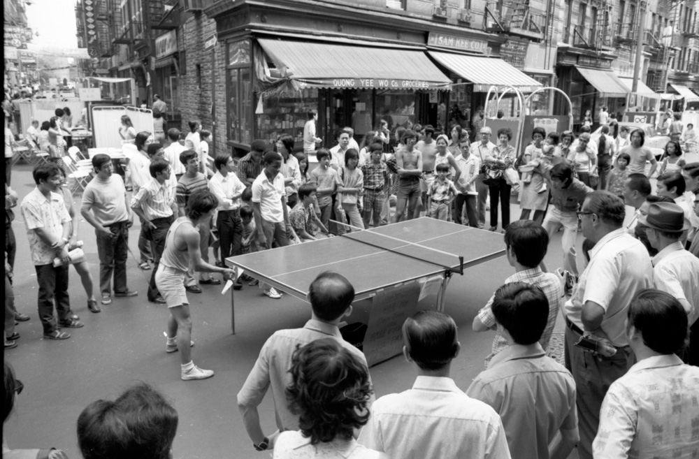 参观摊位的家长们可以把年幼的孩子送到小型日托中心玩耍和照看,而老年人则可以在指定的座位区享用冷饮,观看其他长者讲述他们在美国经历的录像采访。每局乒乓球比赛收费50美分,由输的人支付,游客还可以在街道中央的乒乓球桌上互相挑战,这吸引了大量观众的关注,并为集市筹集了资金。