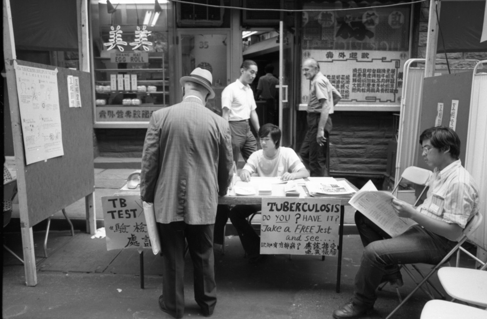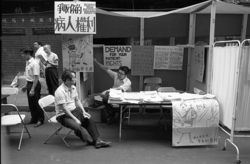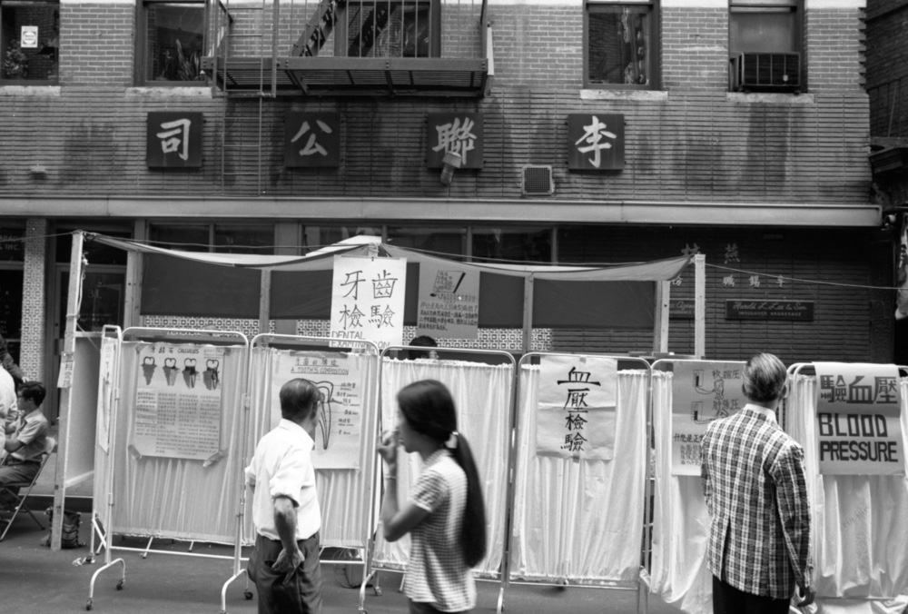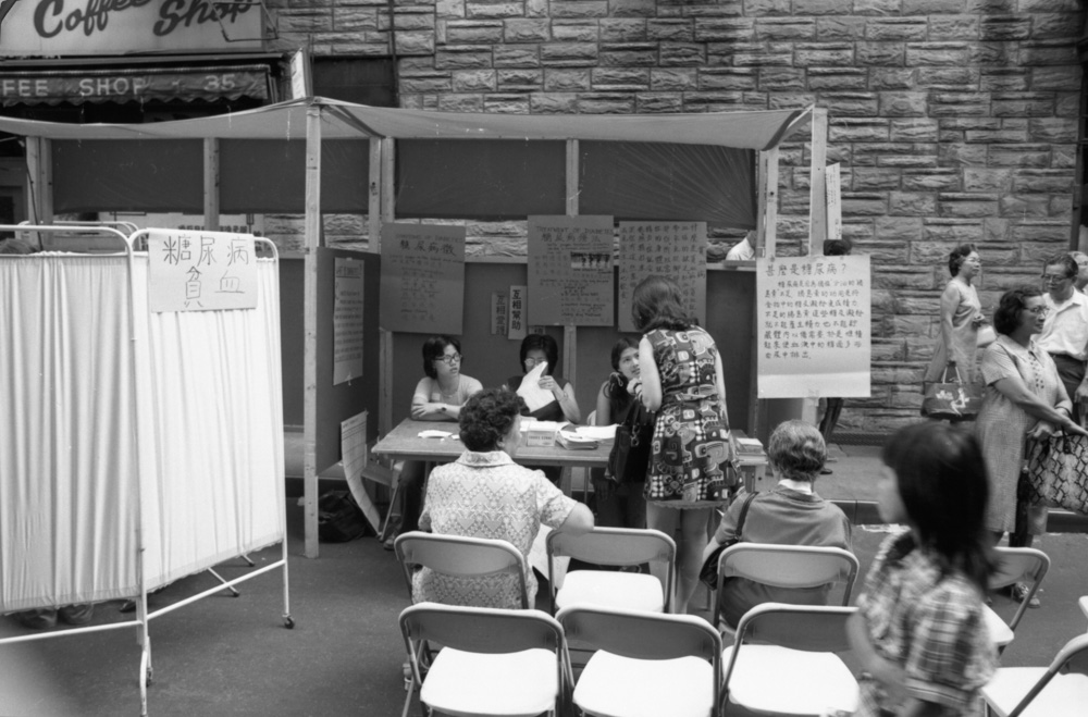 1973年夏天,在唐人街街头集市期间,号召社区居民“团结起来,争取我们的权利!”的横幅高高挂在勿街和披露街上空。唐人街的街道在集市期间变成了一个充满活力的行动主义和关爱空间。受到黑豹党和其他融合社会服务、政治赋权和教育的草根项目的启发,集市组织者在勿街和披露街沿线设立了摊位,为社区成员提供免费健康检查,并提供有关他们作为患者、工人和租户的权利的信息。