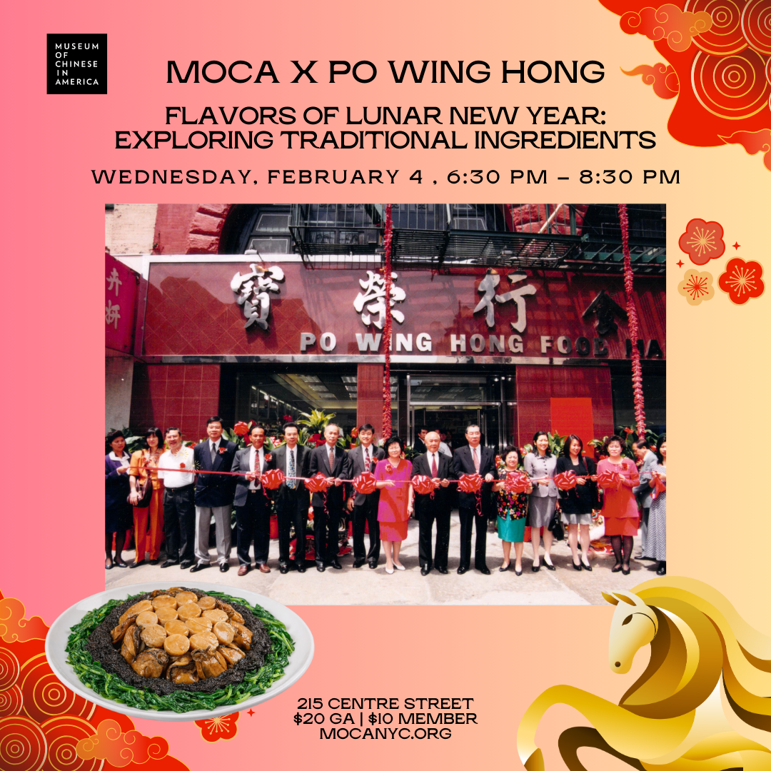In collaboration with Po Wing Hong Food Market 寶榮行, a cornerstone of Manhattan’s Chinatown for more than 45 years, the Museum of Chinese in America (MOCA) invites you to an engaging Lunar New Year tasting and conversation that celebrates the flavors and stories behind traditional ingredients. Join Sophia Tsao, Executive Vice President of Po Wing Hong, for a guided introduction to staple ingredients commonly used for New Year cooking, from premium dried seafood and nourishing soup components to herbs and pantry essentials shaped by generations of culinary wisdom.
