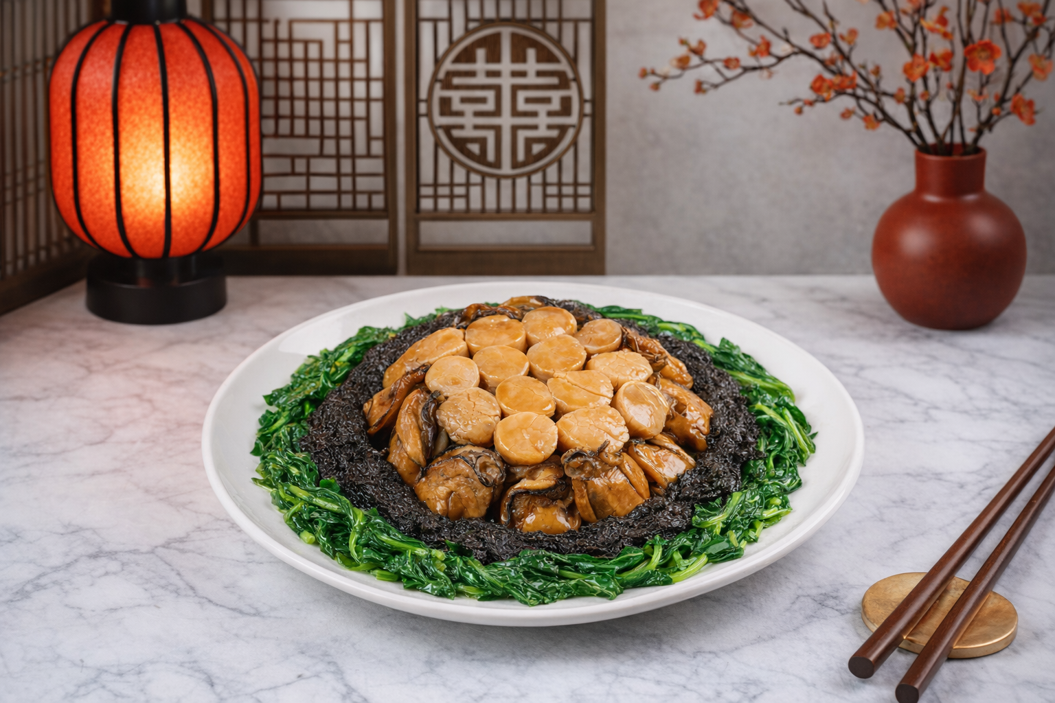 Through a lively presentation and a curated tasting of the classic and luxurious Cantonese dish Ho See Fat Choy (braised conpoy with dried oyster and black sea moss), you will learn what these ingredients are, how families use them at home, and why certain foods carry auspicious meanings for the season. This traditional dish typically features dried oysters, symbolizing well-being; dried scallops, symbolizing fortune; and sea moss, symbolizing prosperity, all braised together in a rich, savory sauce.