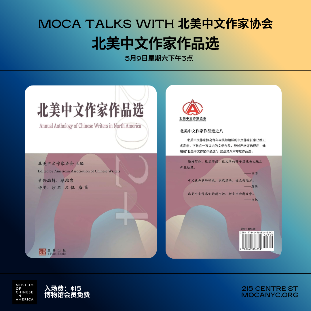 MOCA proudly partners with the North America Chinese Writers Association for a book talk on the newly published Annual Anthology of Chinese Writers in North America (2024), featuring contributors and editors in conversation about the anthology and the diasporic writing journey.