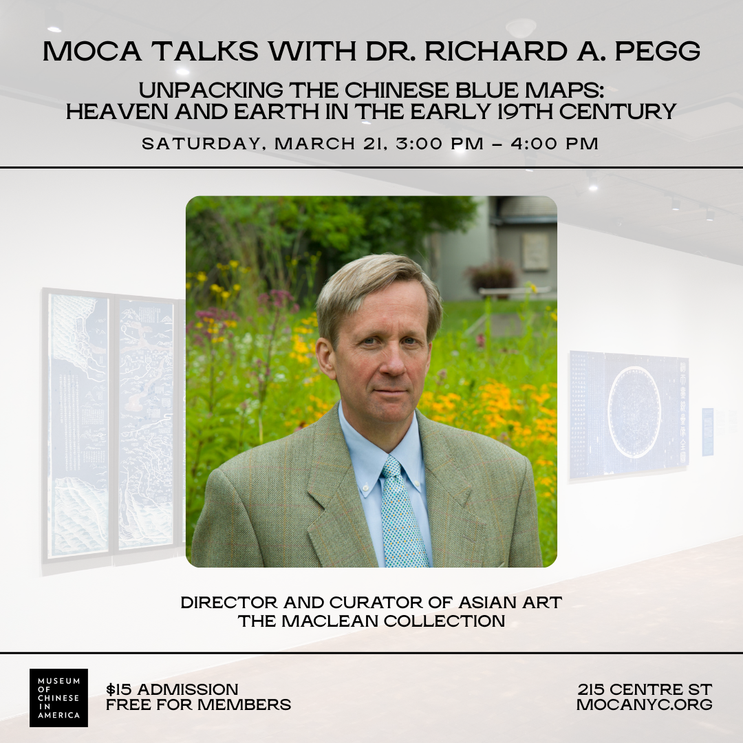 Presented during Asia Week New York, the Museum of Chinese in America invites you to an insightful presentation by Dr. Richard A. Pegg, Director and Curator of Asian Art at the MacLean Collection and curator of MOCA’s special exhibition Heaven & Earth: The Blue Maps of China (on view through March 29, 2026). The presentation will be followed by a guided Q&A in the gallery.